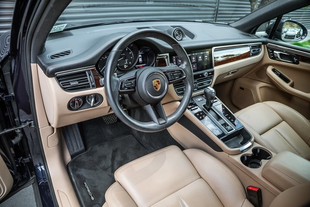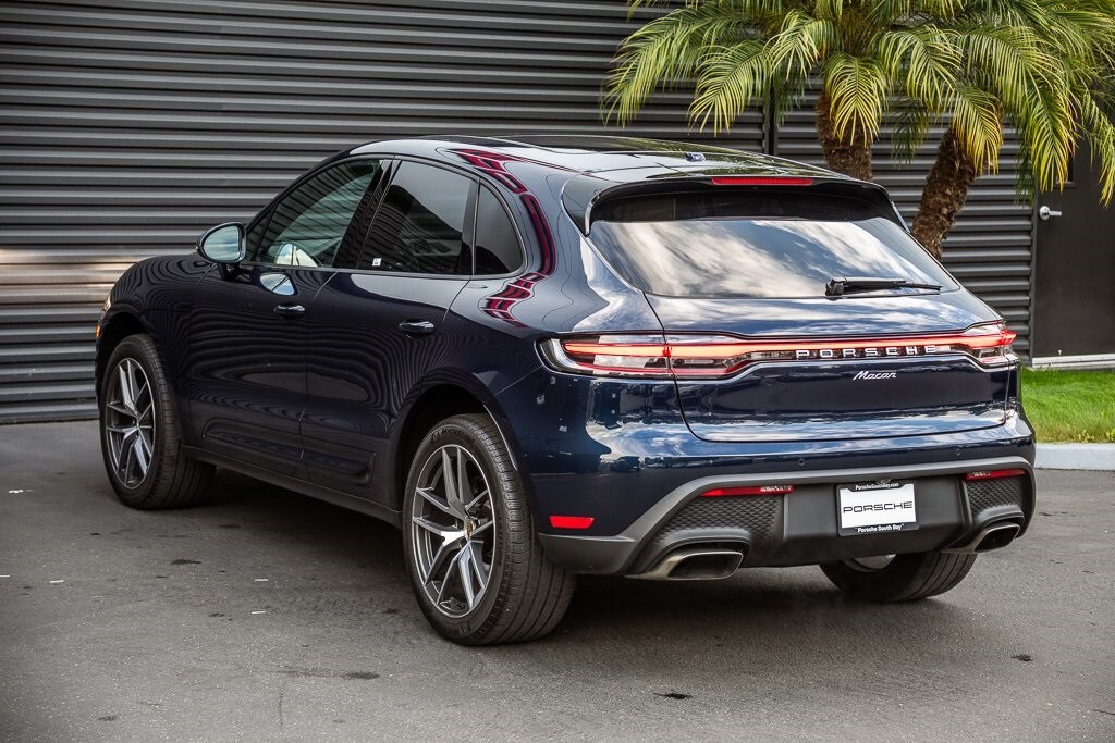 Porsche South Bay is thrilled to offer this exceptionally well equipped, Clean Carfax - 1 Owner, Purchased new at Porsche South Bay, Serviced at Porsche South Bay, Porsche Approved Certified Pre-Owned 2022 Porsche Macan Night Blue Metallic over Black/Mojave Beige leather.