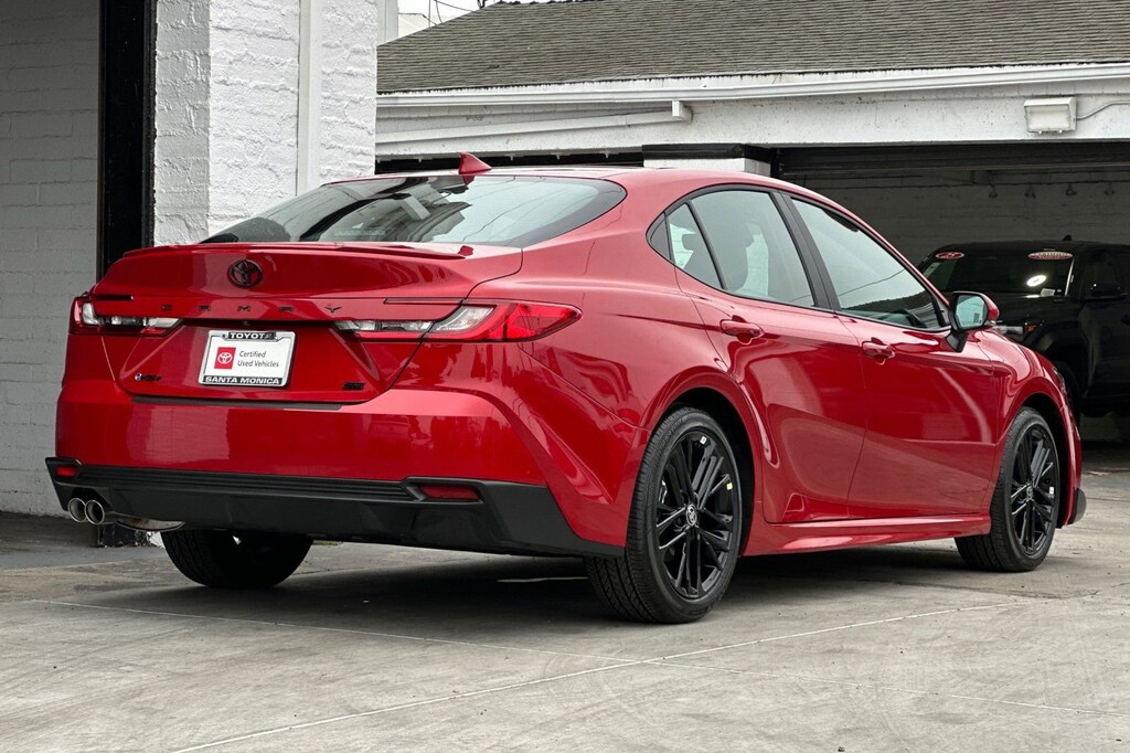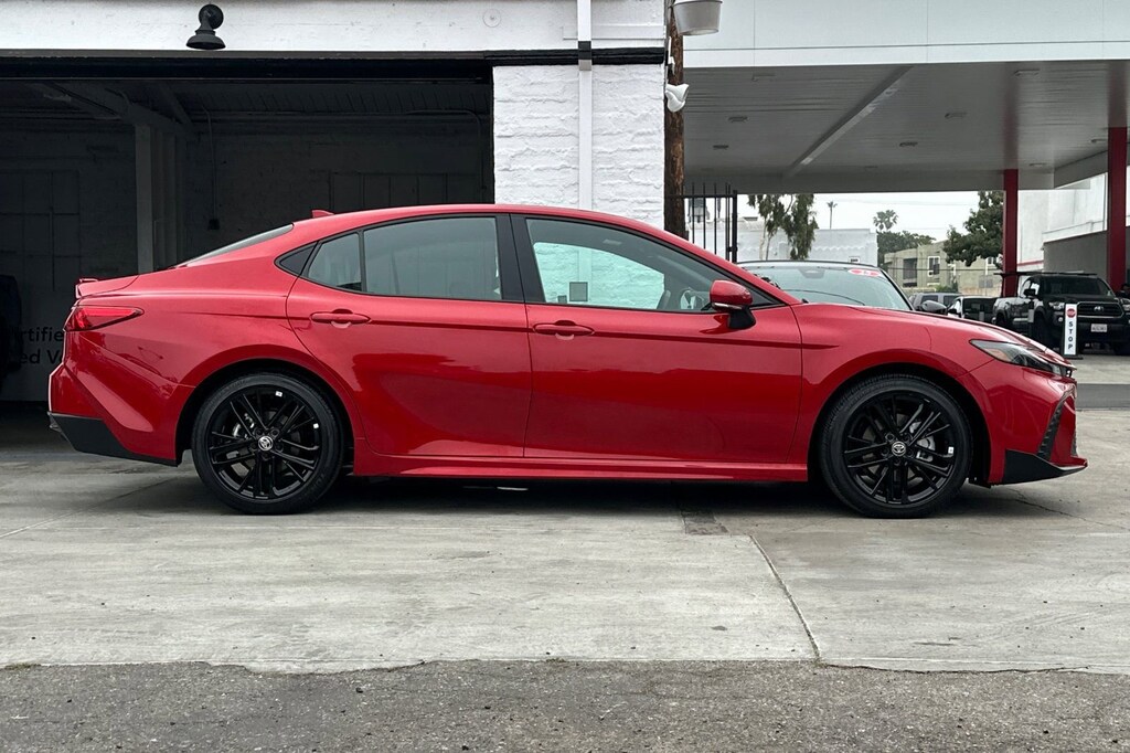 Camry SE, 4D Sedan, 2.5L 4-Cylinder 16V DOHC, eCVT, FWD, Red, Exterior Parking Camera Rear, Radio: Toyota Audio Multimedia w/12.3" Touchscreen, Spoiler, Wheels: 18" Black-Finished Alloy.